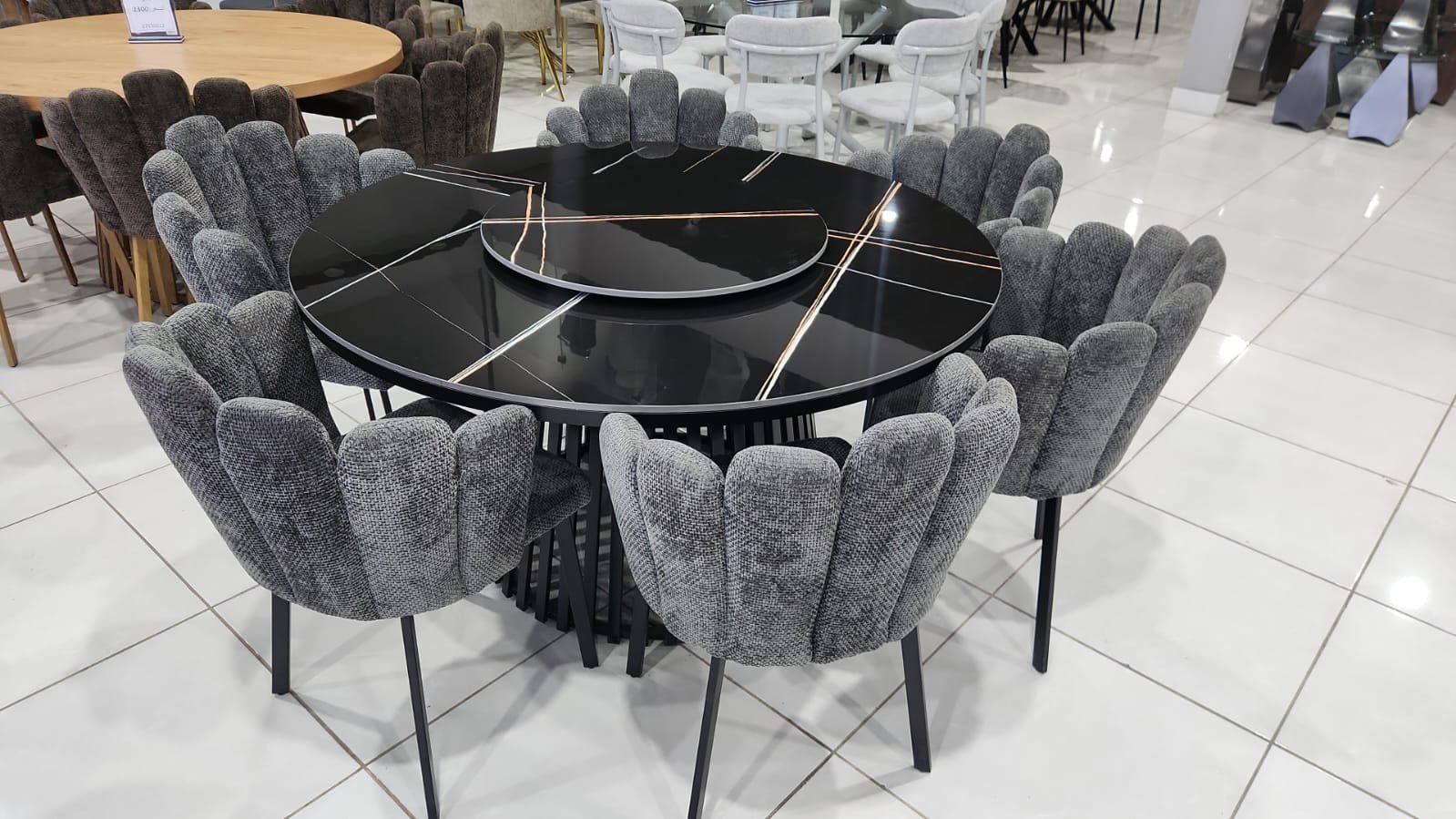 طاولة طعام دائرية 6كرسي اللون اسود