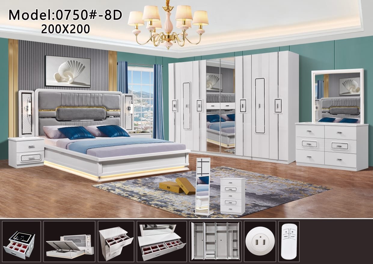 • السرير: العرض 200سم – العمق 200 سم – الارتفاع 90 سم